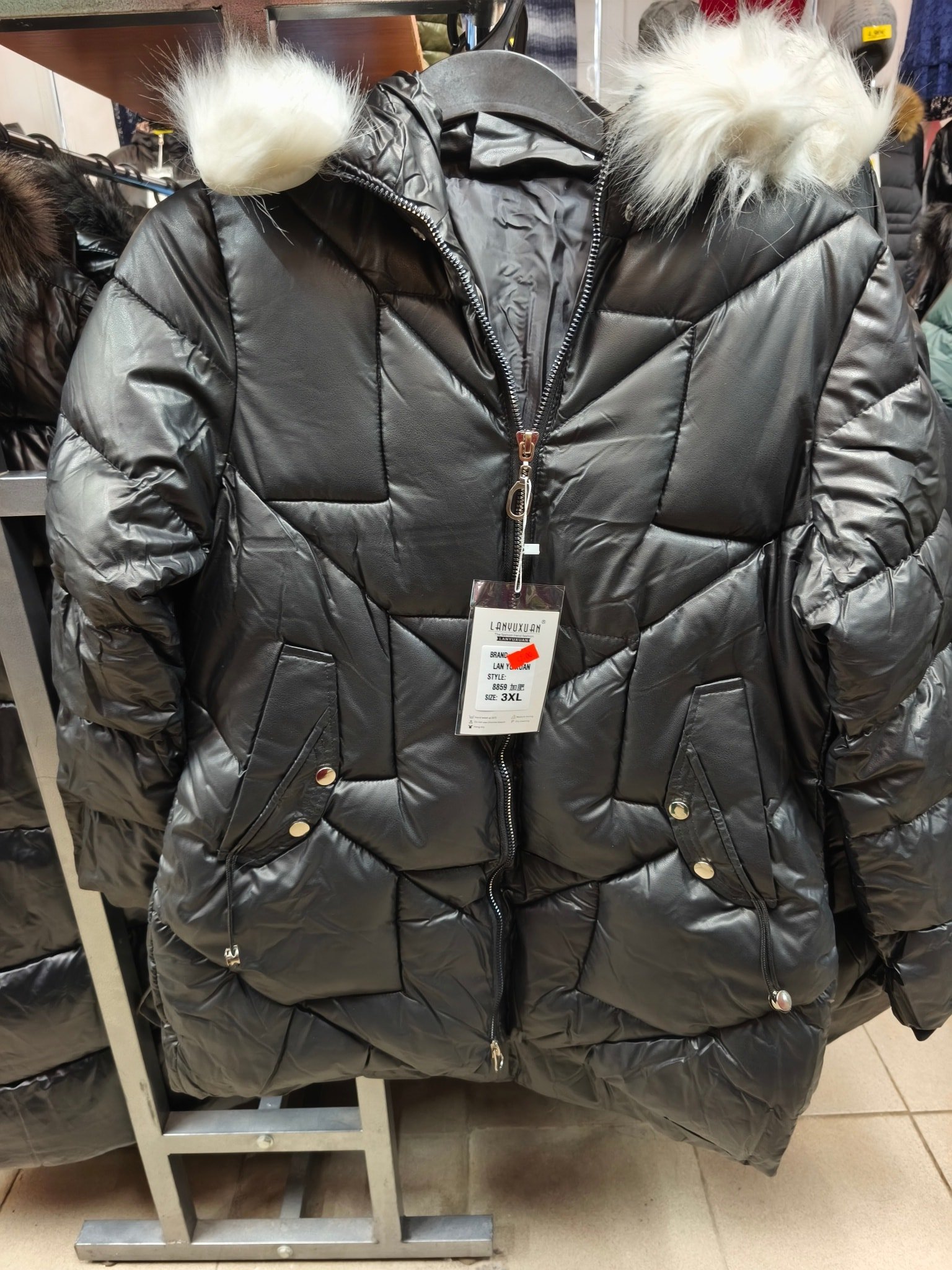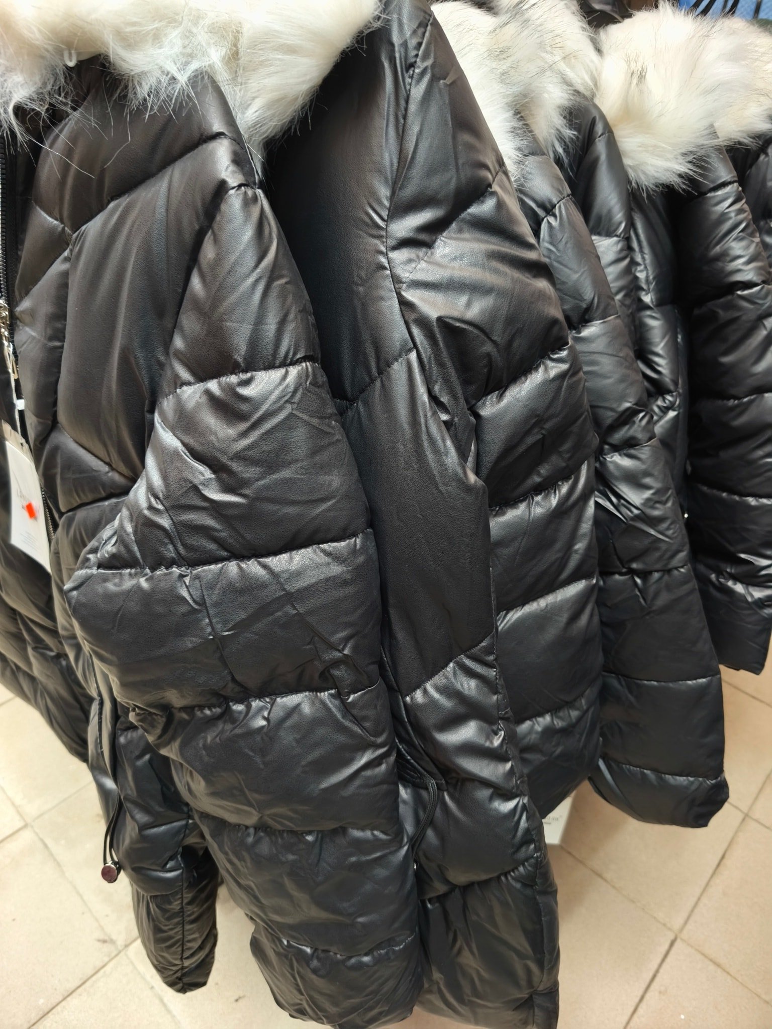 produkto kiekis: Juoda šilta striukė su kailiuku baltu