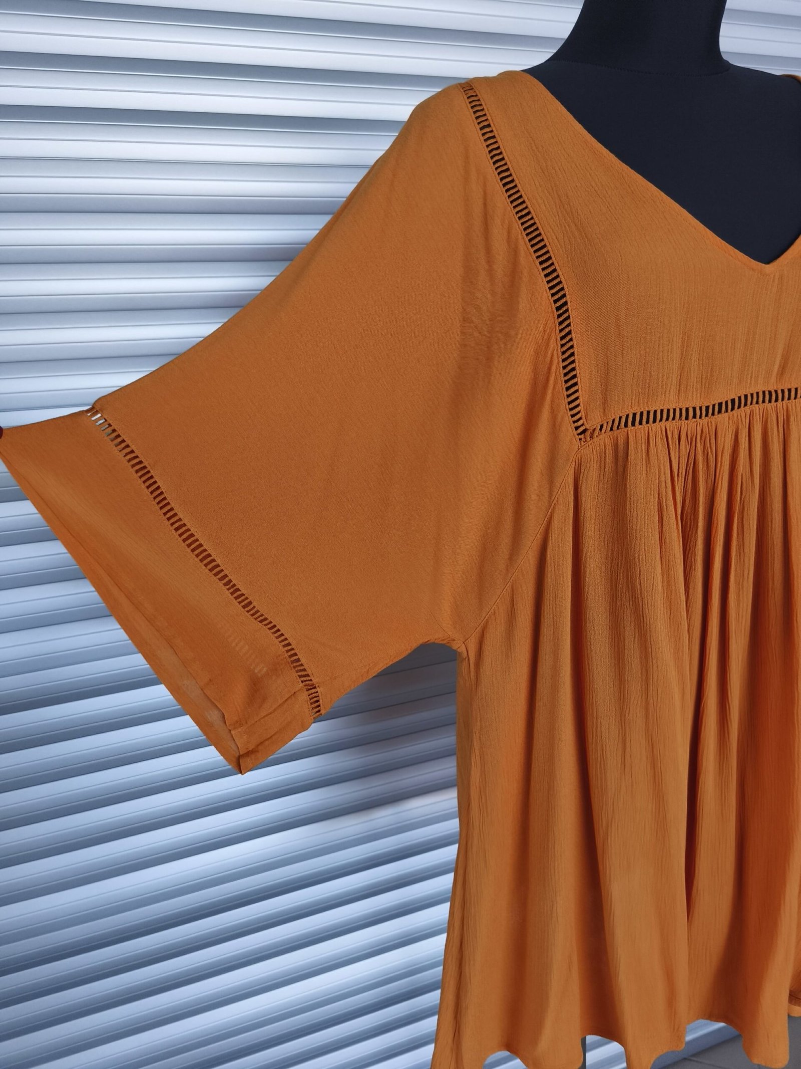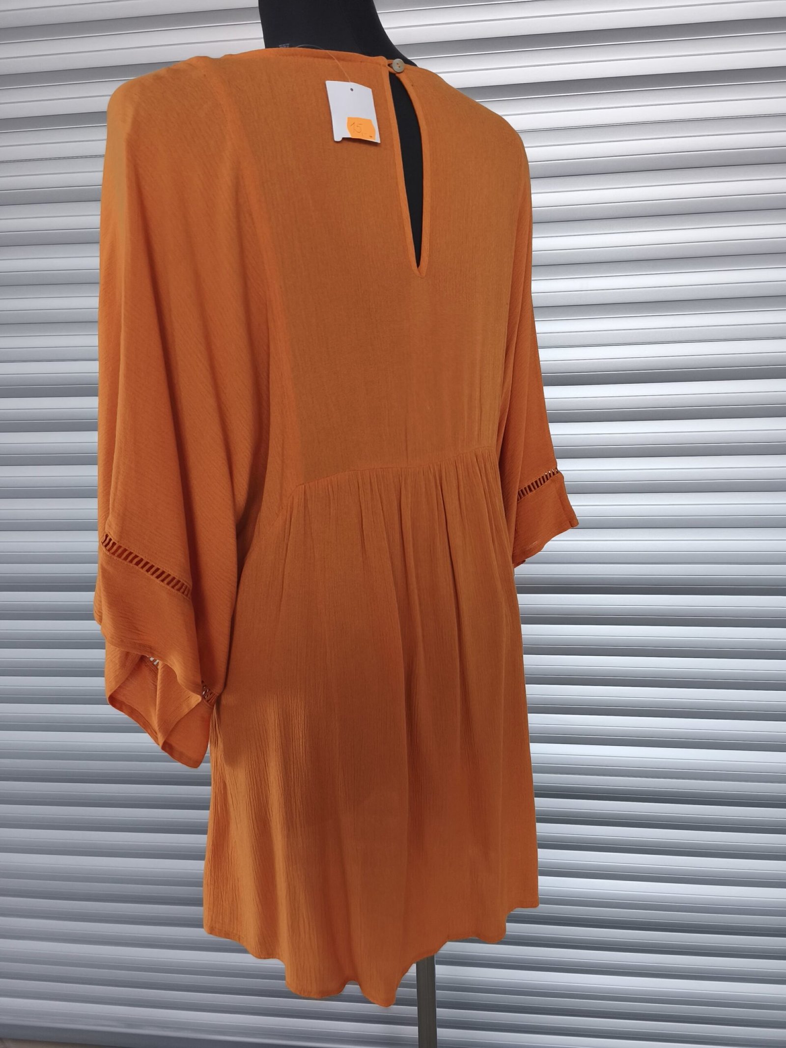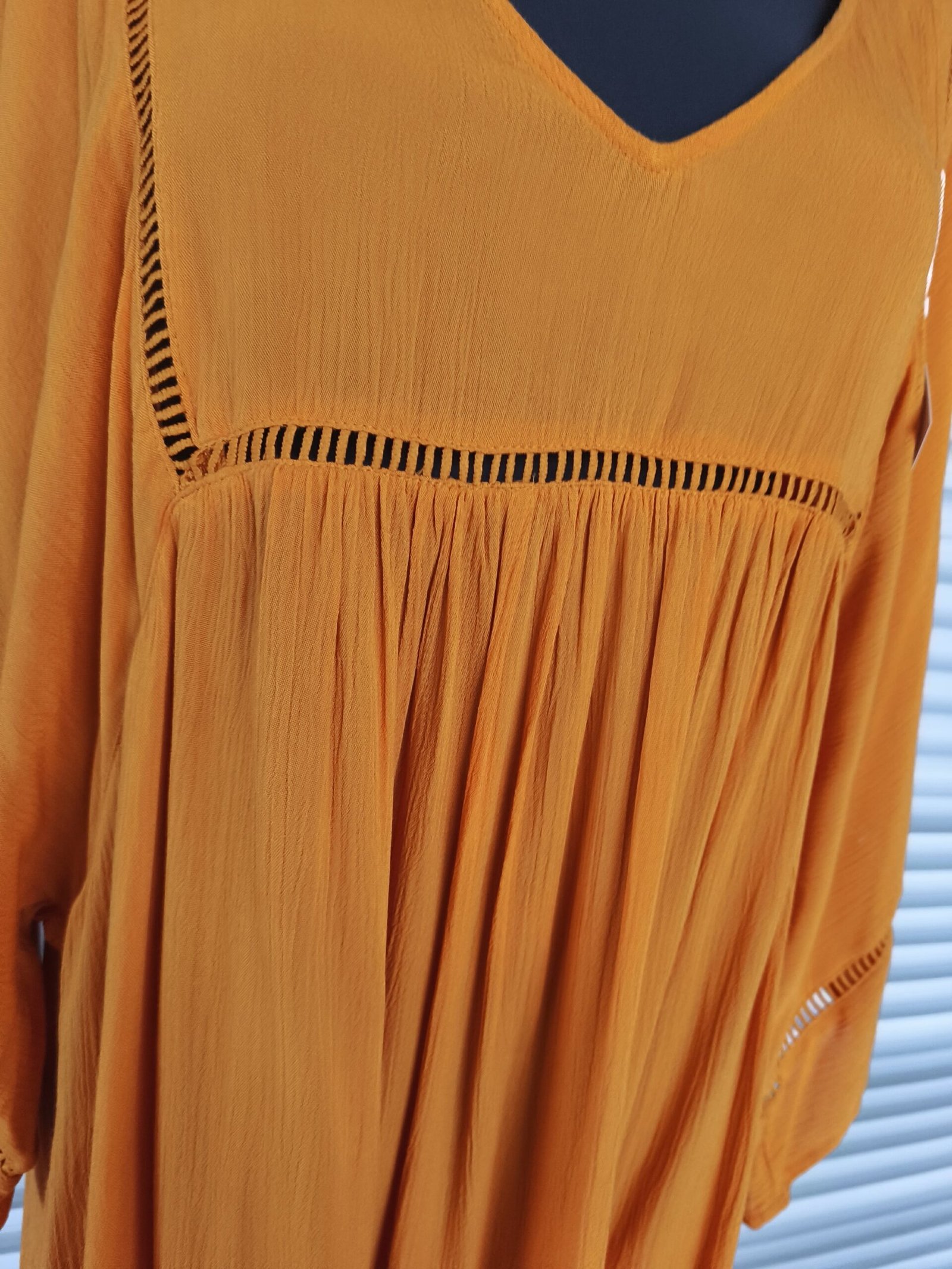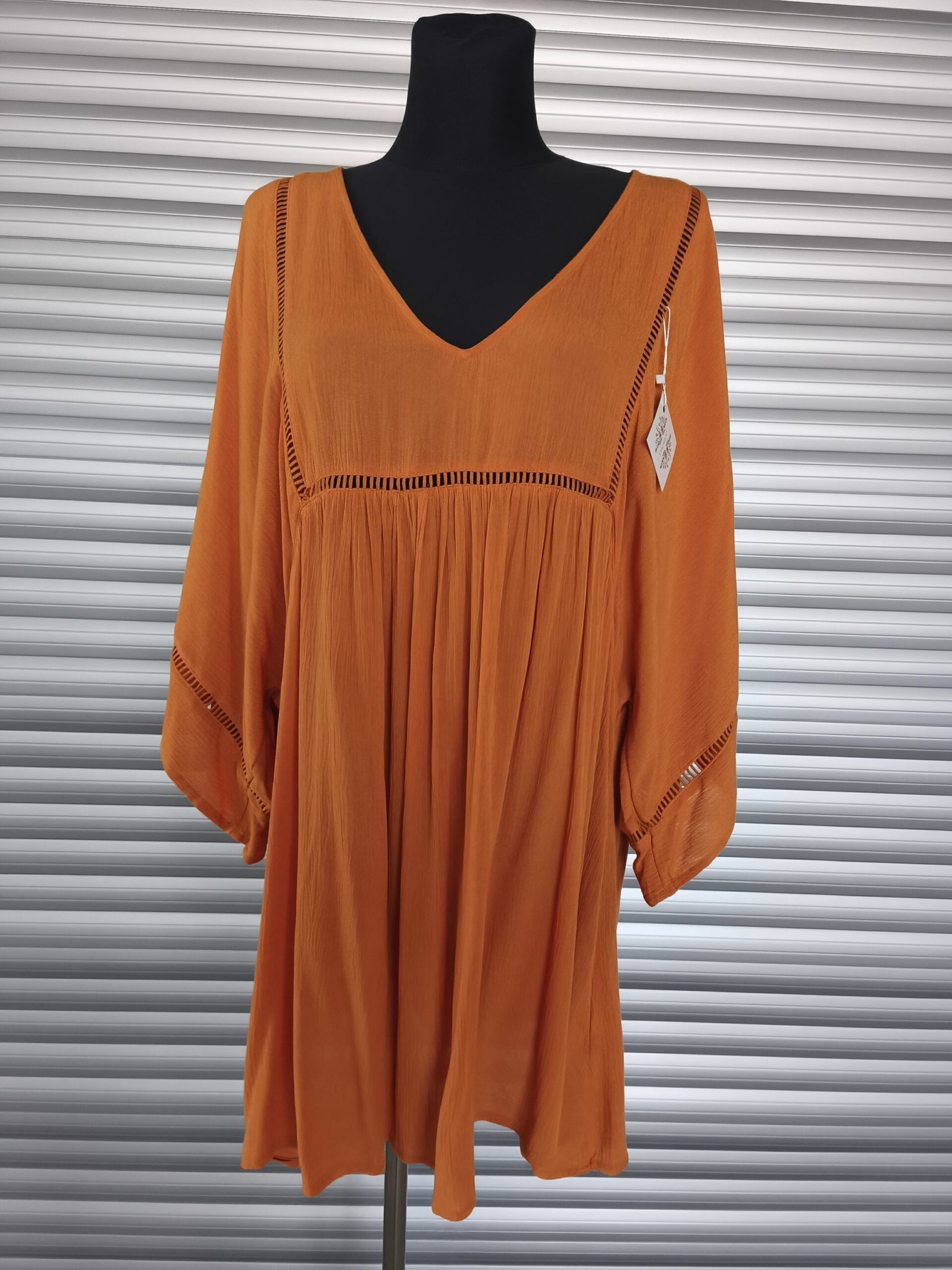 Country stiliaus, ryški oranžinė suknelė. Laisvai krentanti.